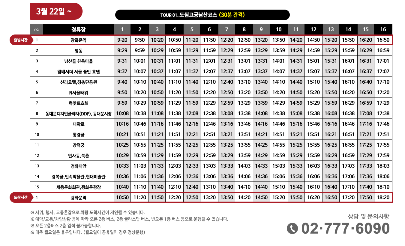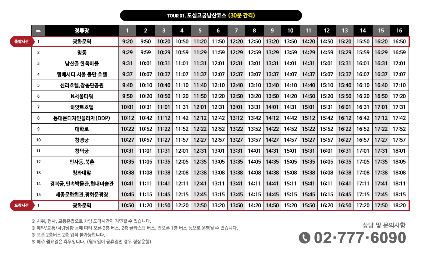 *집회, 행사 및 교통상황에 따라 운행이 조정될 수 있으니 이용 전 공지사항을 확인 바랍니다.